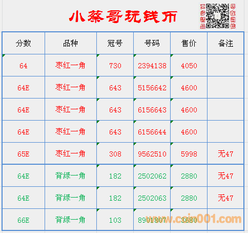 更新連號(hào)棗紅一角, ..