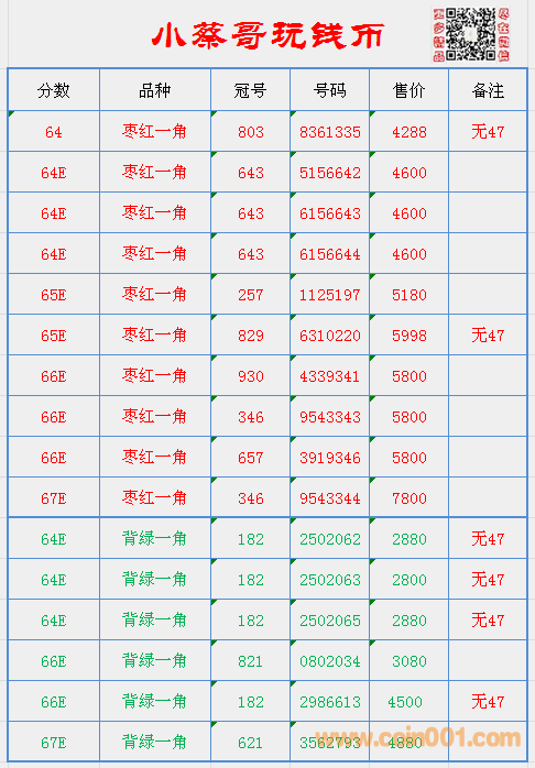 更新連號(hào)棗紅一角, ..