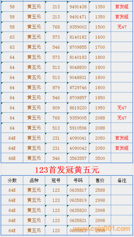高分PMG紅一元,黃五 ..