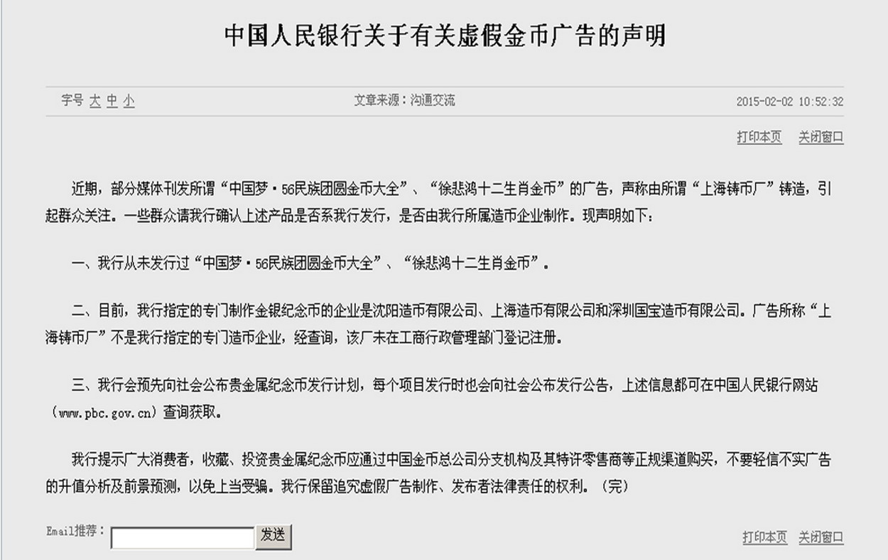 客觀地講,這則廣告除了“上海鑄幣廠”經(jīng)人行核實(shí)未進(jìn)行工商注冊以外,其他內(nèi)容,人行憑什么說它是虛假廣告?一沒有兜售偽劣產(chǎn)品進(jìn)行欺詐,二沒有假借人行的名義招搖撞騙。