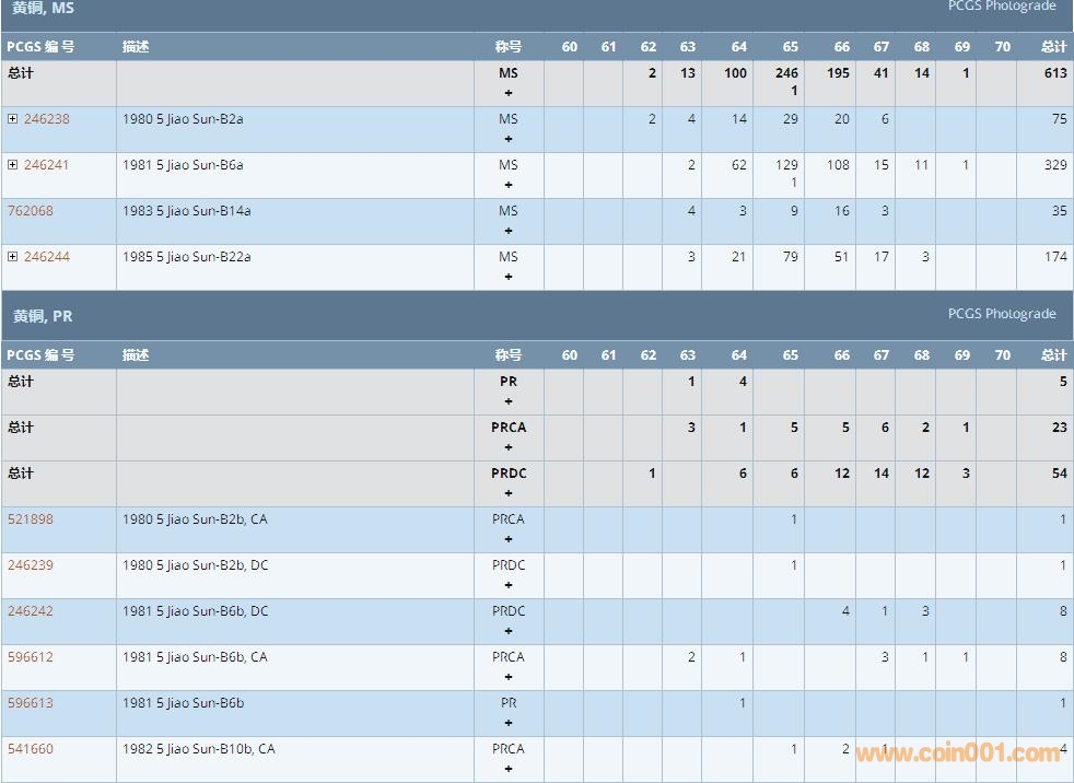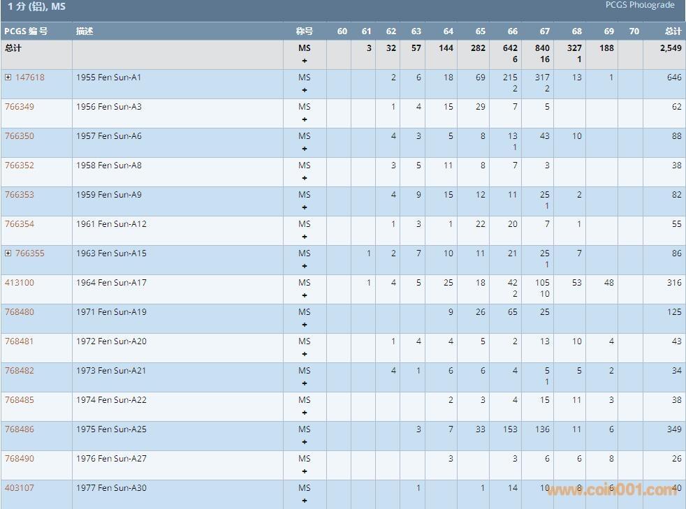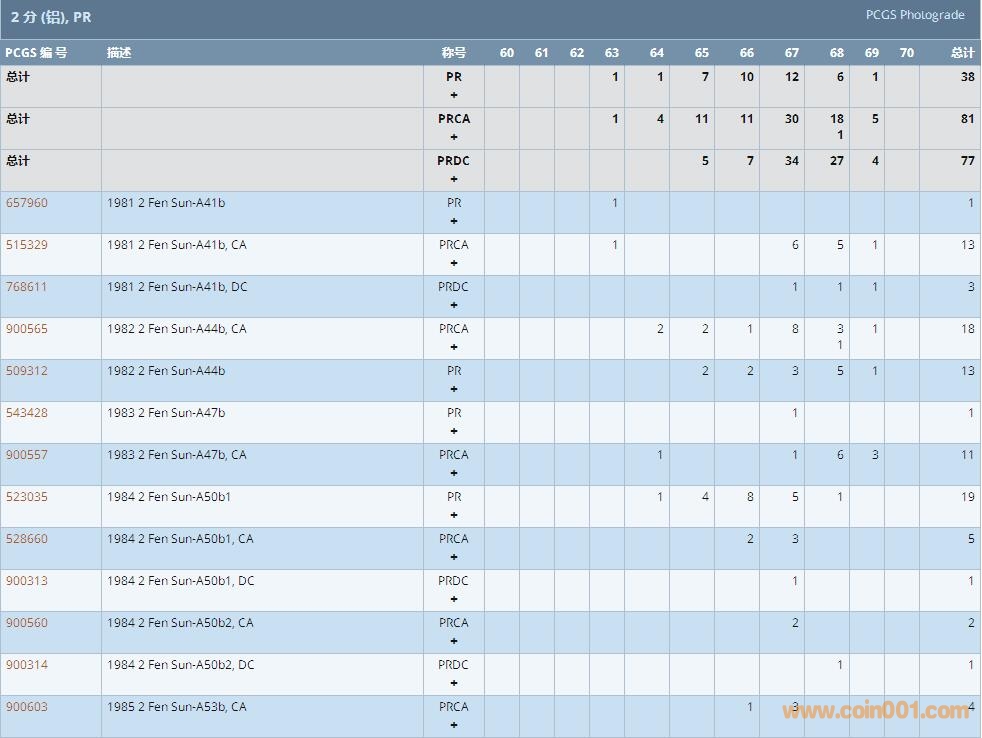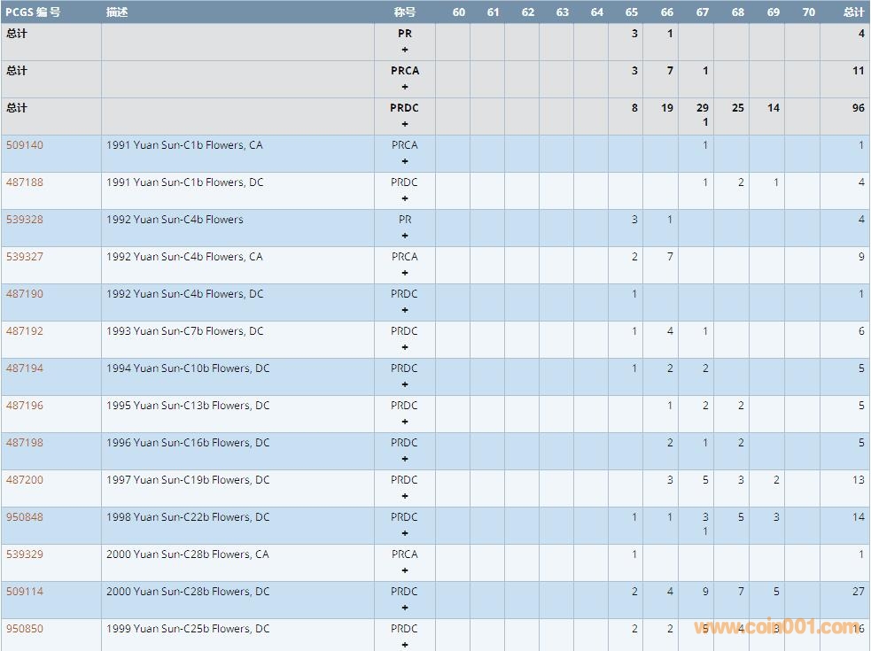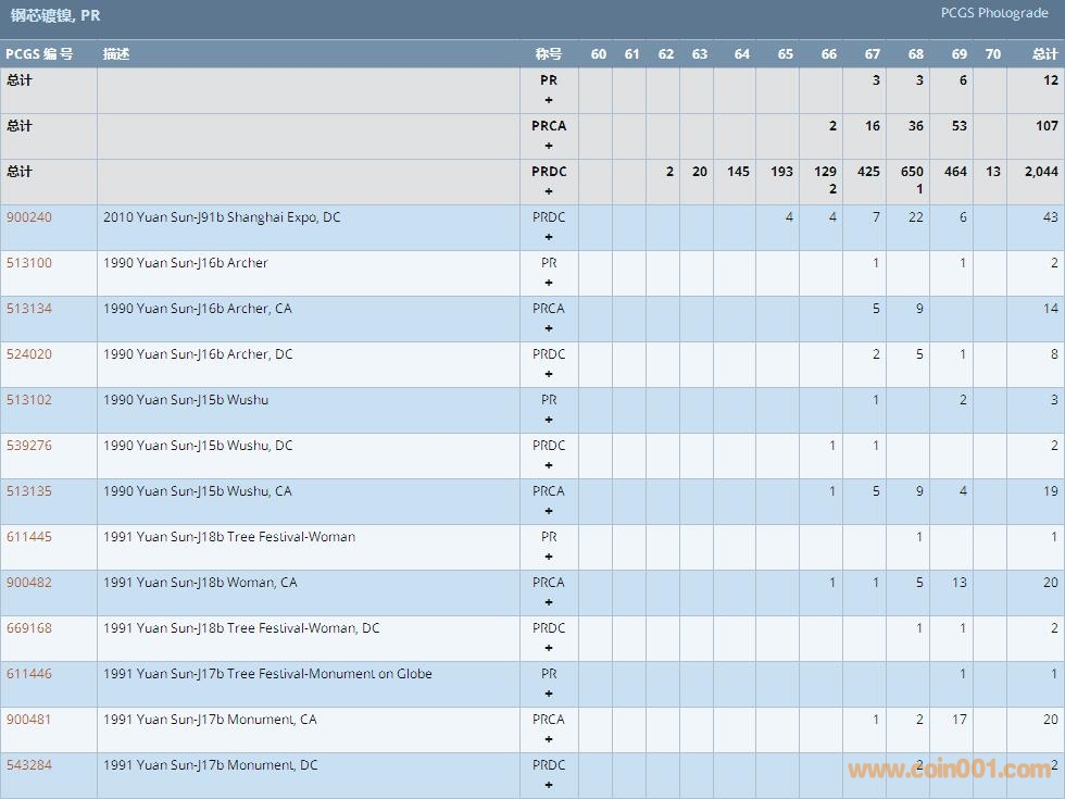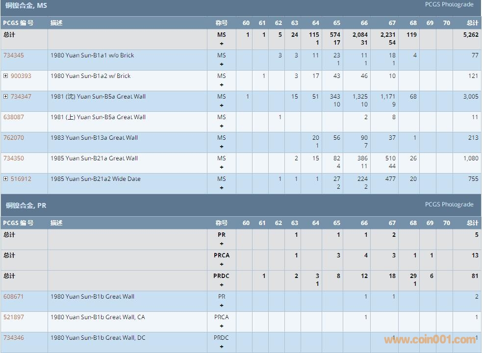 PCGS硬幣評級數(shù)量報(bào)告 ..
