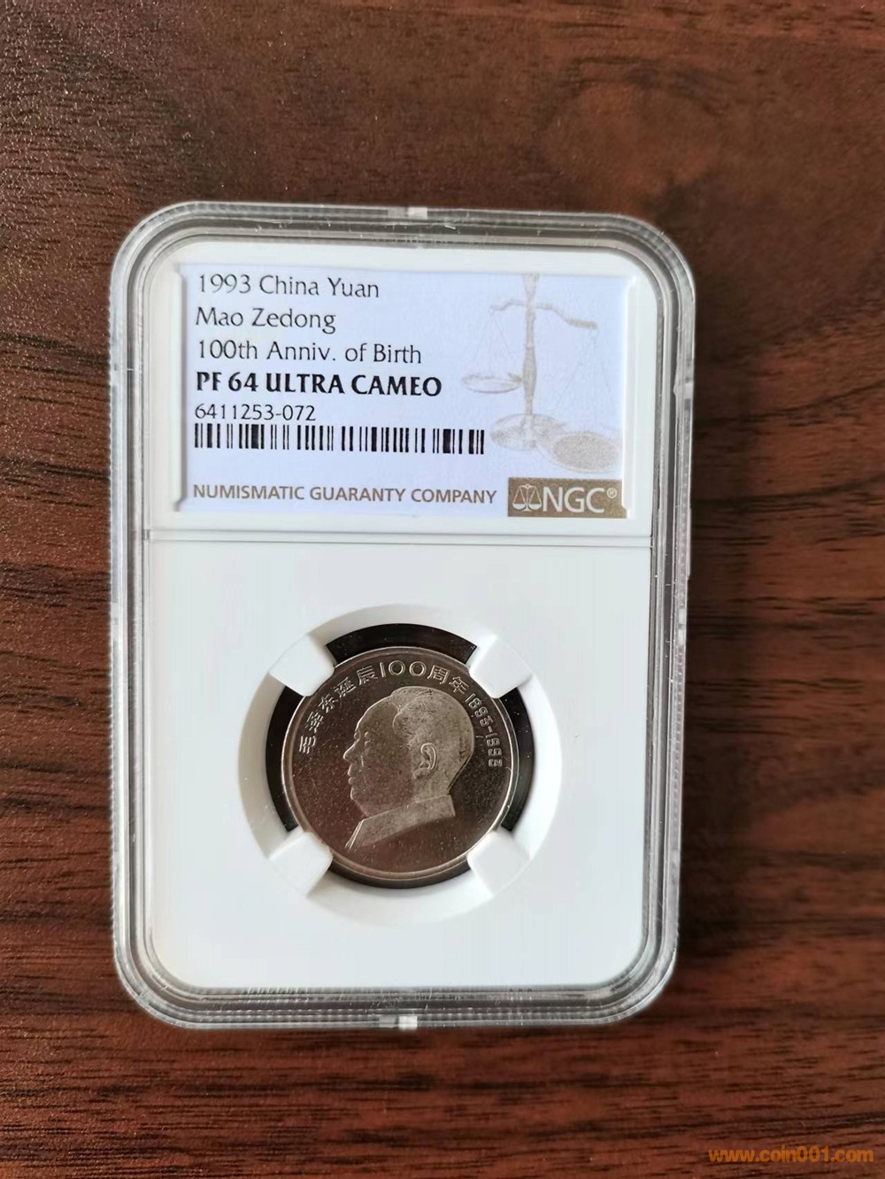3、1993年毛澤東精制紀(jì)念幣,PF64UC,售1000元;
