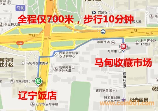 酒店所在位置及到達馬甸收藏市場的路線: