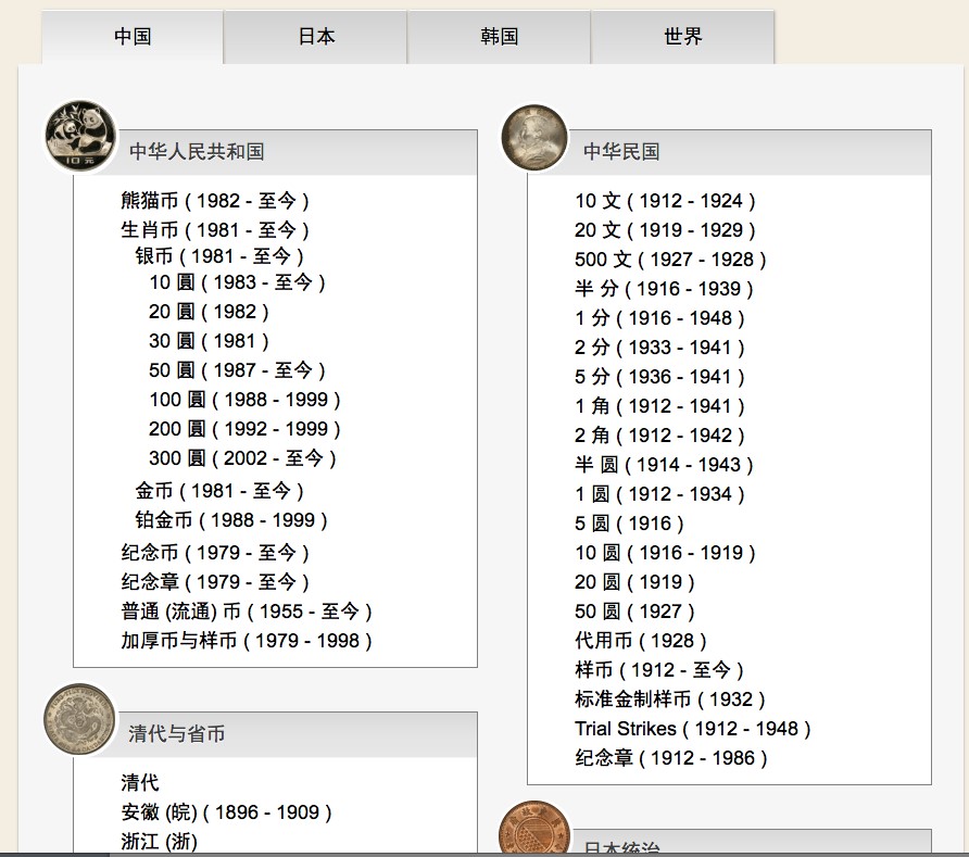 http://www.pcgs.com.cn/pop/ChineseCoins, 進(jìn)入頁面后您將看到中國錢幣被的幾大門類。如果您還收藏世界各地的錢幣,您可以點(diǎn)擊頂部一行“中國”一欄右邊的按鈕,經(jīng)PCGS評級的世界錢幣數(shù)量便可一覽無遺。