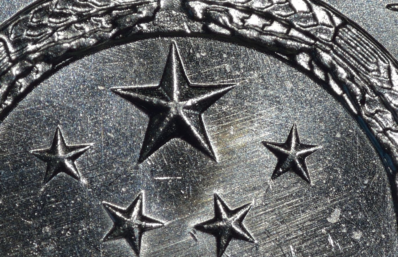 所謂拋光痕 1、2壓著拋光痕 3、4 完全是因?yàn)樗鼈儾辉谝粋€(gè)平面上而造成的錯(cuò)覺(jué)。底板上的拋光痕在幣面凸出的部分會(huì)斷掉。碰巧這個(gè)凸出部分又有自己的拋光痕而已。這無(wú)法用作組合模具的證據(jù)。