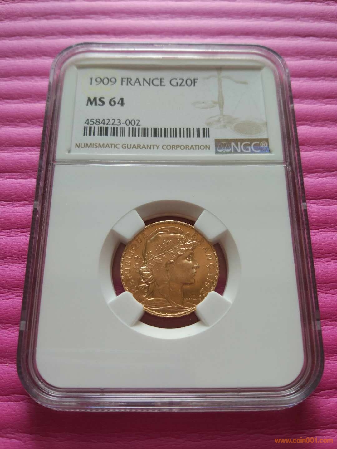 規(guī)格:直徑21mm,重6.45克,面額20法郎,含金90%,銅10%。