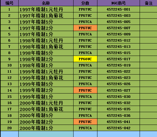 評級普通(精制)紀念幣交易