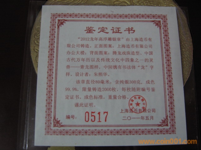 上幣廠300克高浮雕純 ..