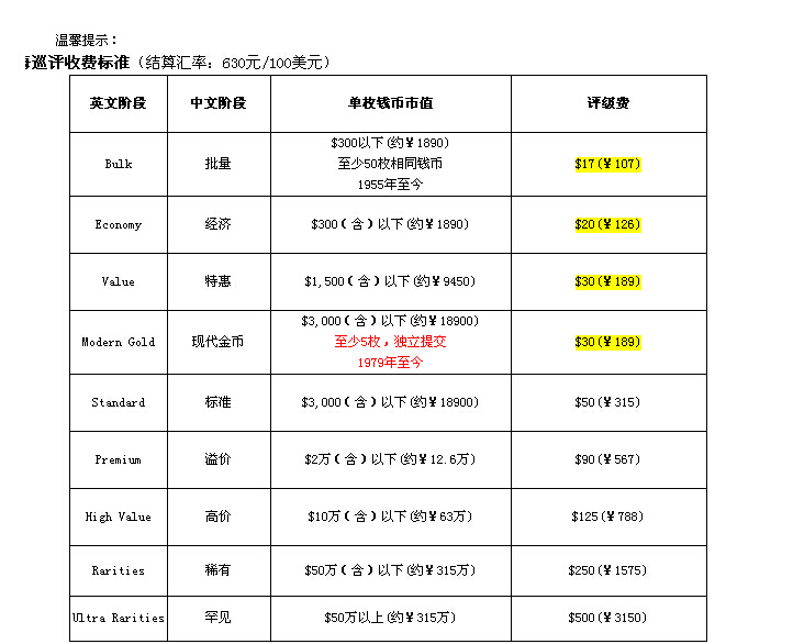 凡7月20日之前(含20號)提交申請的客戶,評級費一律9折。僅限網(wǎng)上提交申請、及上海分公司處提交申請,并于7月25日之前付清款項且到貨廣州國標的客戶(備注:網(wǎng)上申請的客戶按照網(wǎng)站提示交付評級費用及錢幣),逾期不候。