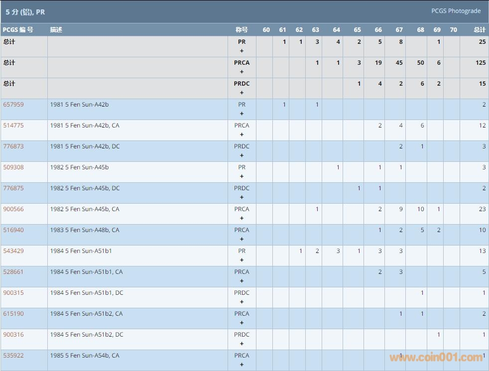 PCGS硬幣評(píng)級(jí)數(shù)量報(bào)告 ..