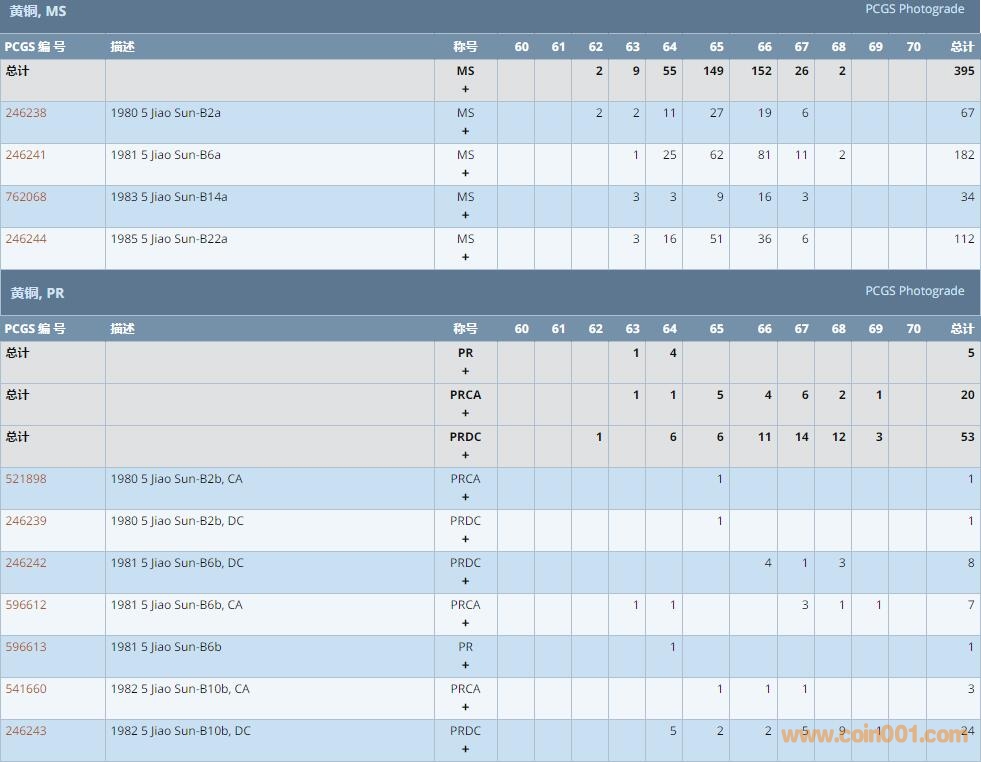 PCGS硬幣評級數(shù)量報告 ..