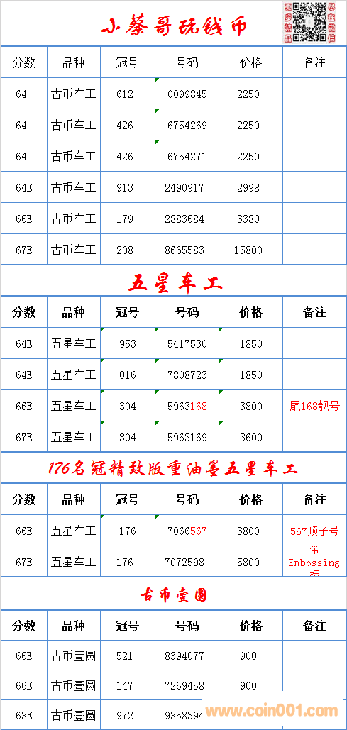 評級普通(精制)紀念幣交易
