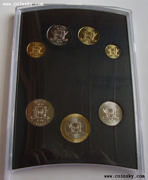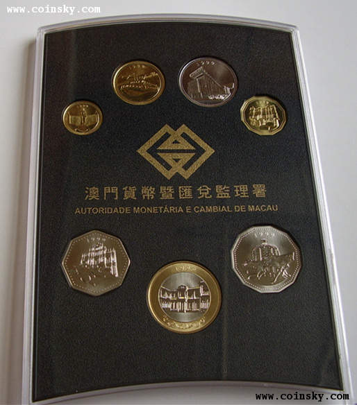 (1)商品全稱為“《’99澳門回歸》珍藏硬幣紀念套裝”,原盒塑封,一套七枚,內(nèi)盒印“澳門貨幣暨匯兌監(jiān)理署”字樣,含澳門幣拾圓、伍圓、貳圓、壹圓、伍毫、貳毫、壹毫硬幣各一枚;