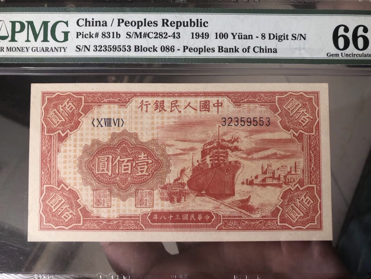 100元紅輪船 無47 PMG66E