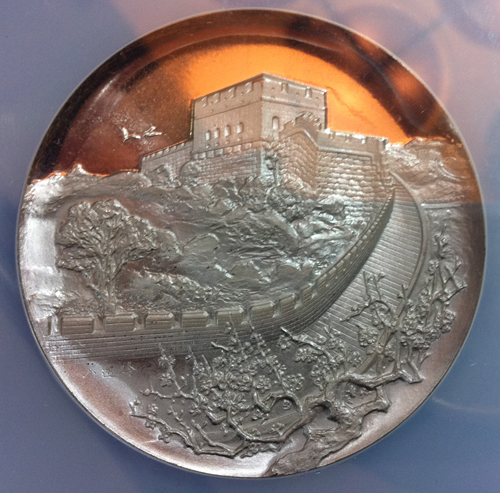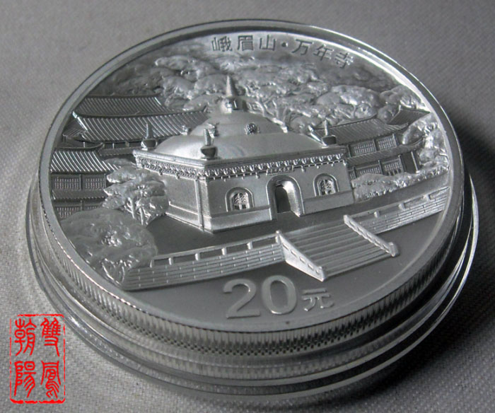 上海造幣廠在頤和園-長(zhǎng)廊銀章上成功運(yùn)用了雙凹面工藝之后,隨即在峨眉山-萬(wàn)年寺銀幣上運(yùn)用了單凹面工藝。