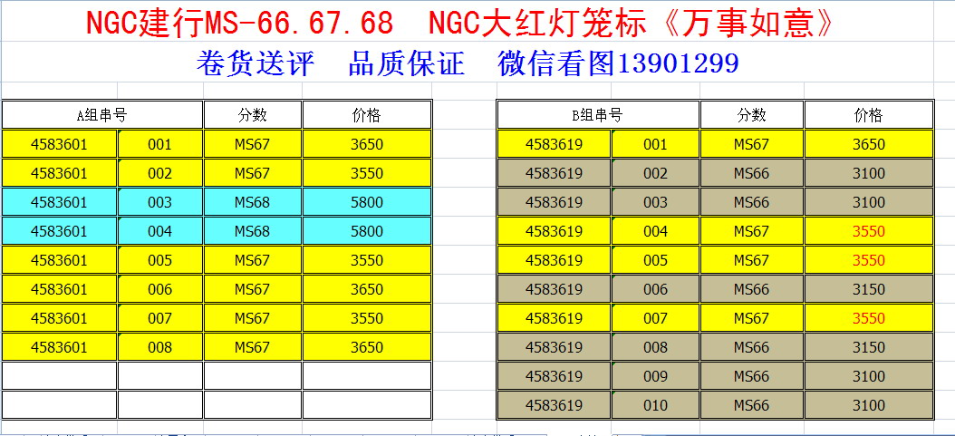 ★★★★★出售NGC66.67 ..