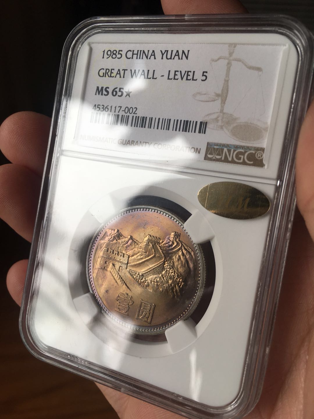 拍賣補圖:星標(biāo)+金標(biāo) 1985年長城一元NGC65☆