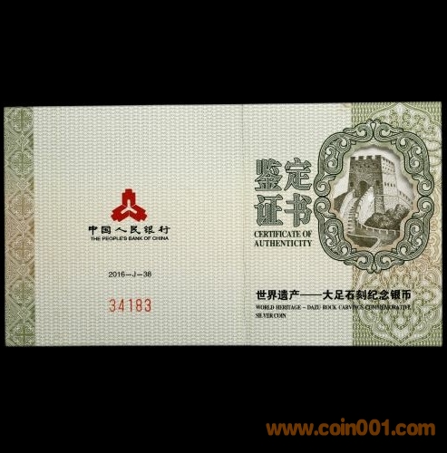 大足石刻30克銀幣兩枚