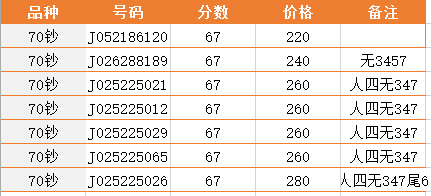 67分70年紀(jì)念鈔靚號