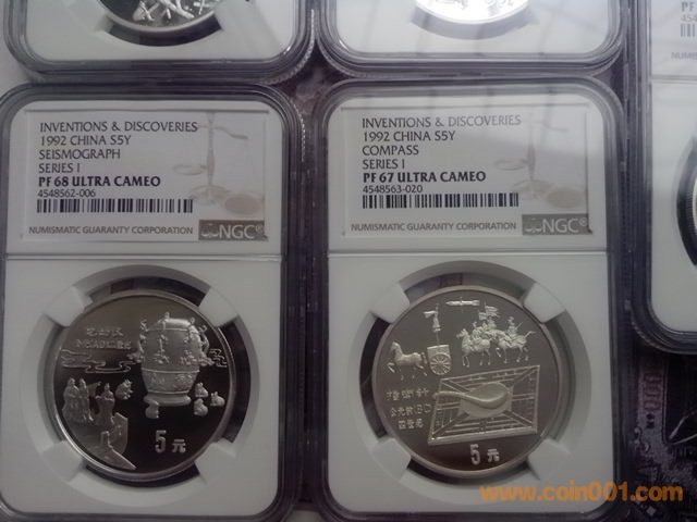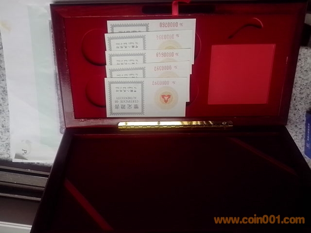 如圖,1992年(第1組)5枚,中國發(fā)明,帶盒帶證書,3000