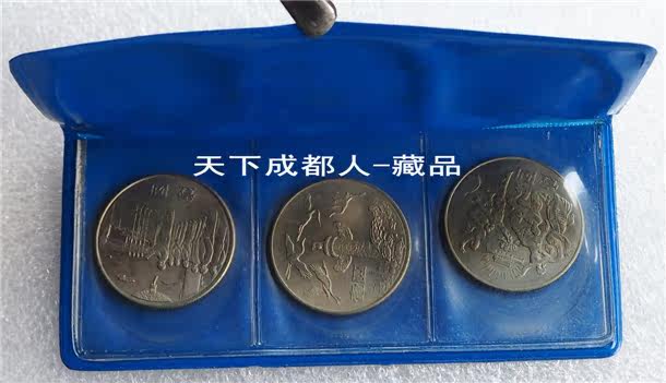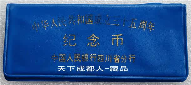 早期稀少塑封版:1984年中國(guó)人民銀行四川省分行(內(nèi)部禮冊(cè))裝幀《中華人民共和國(guó)成立三十五周年紀(jì)念套幣》原裝蘭版塑封冊(cè)全套3幣裝;塑封冊(cè)含建國(guó)35周年套幣(面值壹圓、材質(zhì)銅鎳合金、工藝普制、直徑30毫米)各1枚;由中國(guó)著名工藝美術(shù)設(shè)計(jì)師:顧杏寶、宋津民、唐榮祜、童友明、趙顯明、王振峰和王福德共同設(shè)計(jì)雕刻,上海造幣廠和沈陽(yáng)造幣廠鑄造。原人行四川版蘭色塑封包裝無破損,各幣均原光(注:歡慶幣略有變色),對(duì)品相挑剔者無擾。