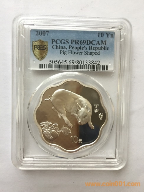 6.2007年梅花豬銀幣,800元,PCGS,PR69DC    盒證齊