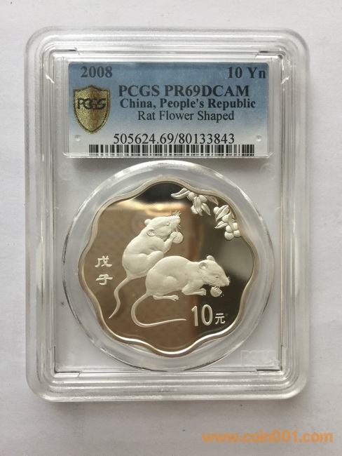 7.2008年梅花鼠銀幣,800元,PCGS,PR69DC    盒證齊