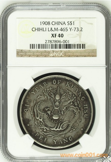 NGC XF40北洋光緒7分2錢 ..