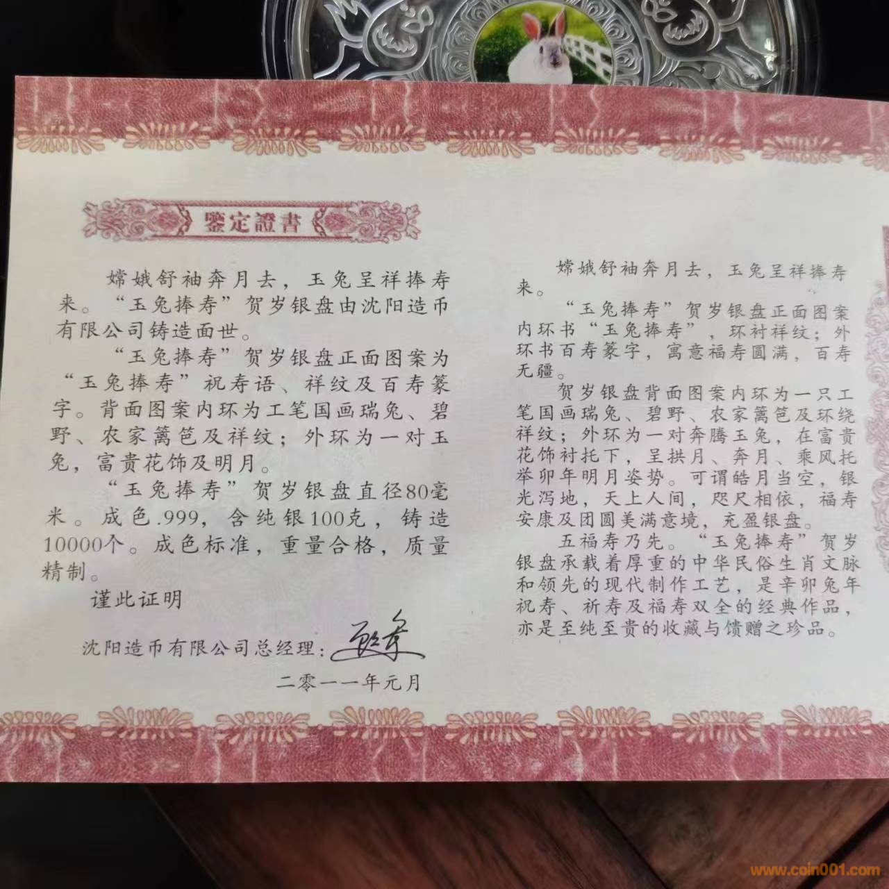 兔年百壽圖銀章