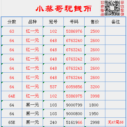 66E無(wú)47紅一元,黃五元 ..