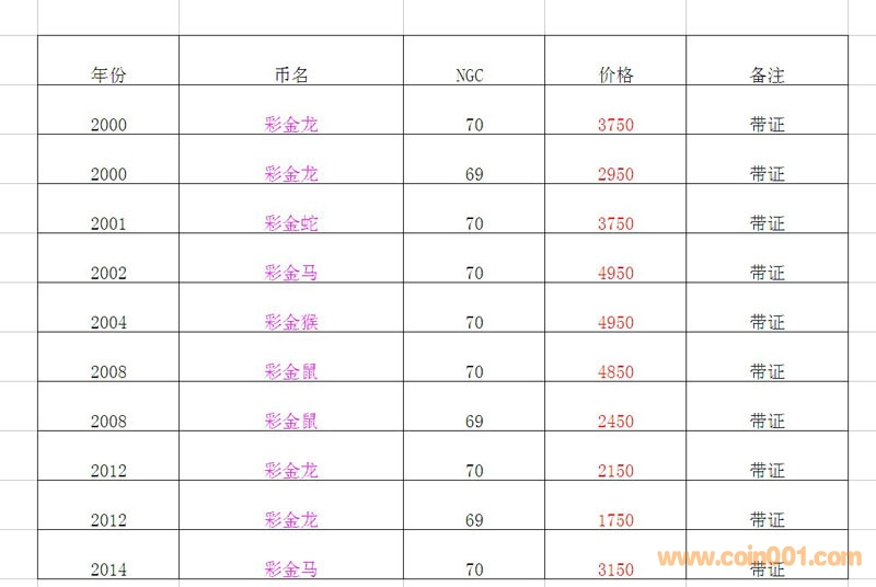降價(jià)出;NGC 70級 彩金 ..