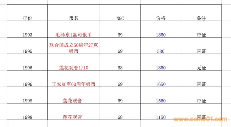 評級普通(精制)紀念幣交易