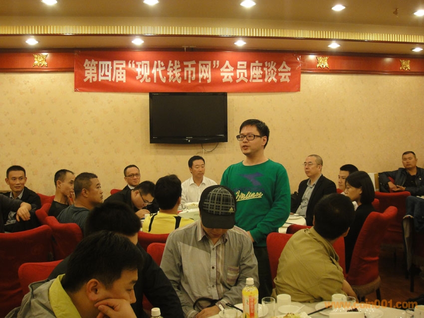 然后網(wǎng)站鑒定師孫克勤老師首先講話,他談到三件事,第一件是網(wǎng)站的條幅“第四屆“現(xiàn)代錢幣網(wǎng)”會員座談會”,并特意把“第 屆”中間空了出來,為什么,我們希望我們的聚會延續(xù)下去,今年是第四屆,我們就粘上四,后面我們還會無限制粘上五、六、七、八......希望我們網(wǎng)站的聚會長期舉行下去,變成中國現(xiàn)代流通硬幣的一件大事。第二件談了這幾年的書籍的編寫過程,從第一本專門編寫精制幣,到第二本編寫普通紀念幣,再到去年編寫流通硬幣,其實他的目的很簡單,就是想通過這一次一次擴大范圍,來擴大精制幣的收藏群體,只有群體大了,發(fā)展才能更好。第三件事,他還會繼續(xù)編寫新書籍,新書籍將成立編寫委員會,他作為主編,其它副主編、編委會成員都是我們網(wǎng)站的會員,這本書將是網(wǎng)站集體智慧的結晶。