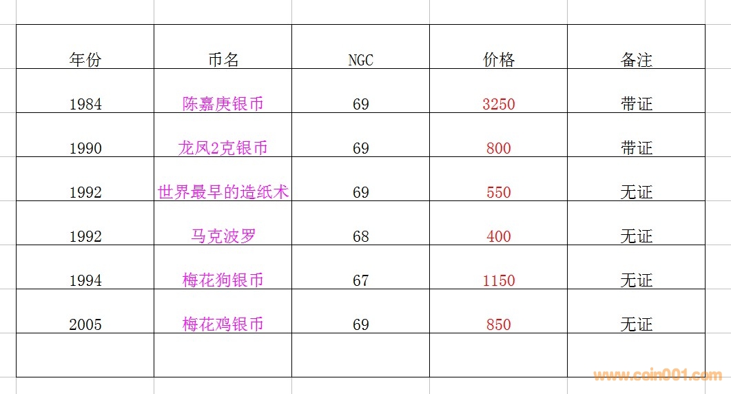評級普通(精制)紀念幣交易