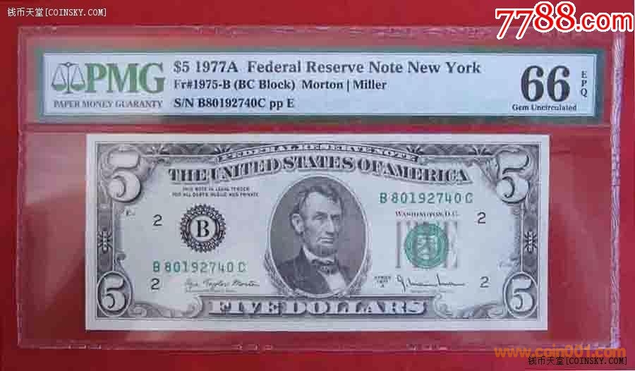 PMG66分美鈔紙幣4枚