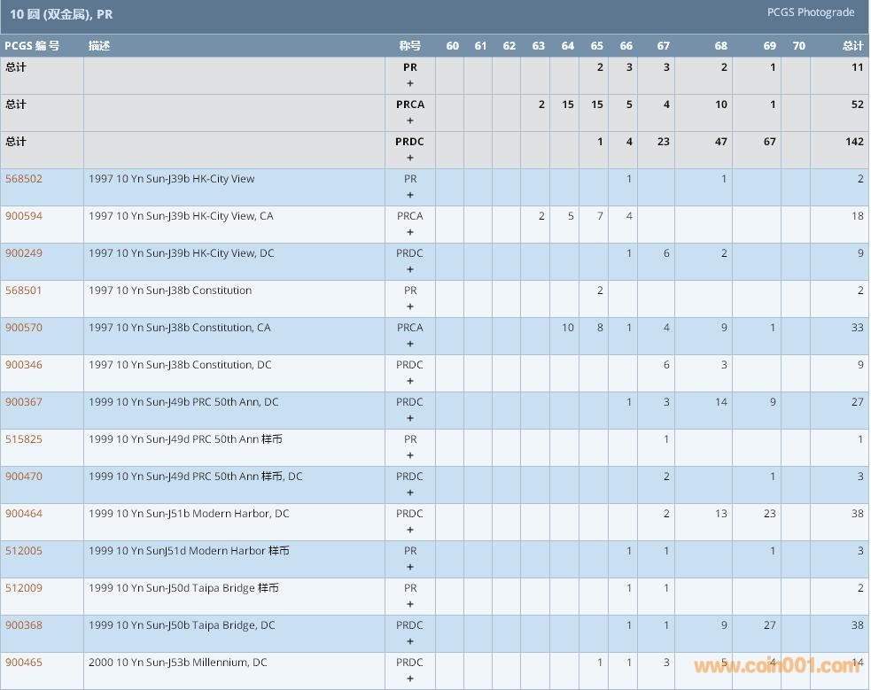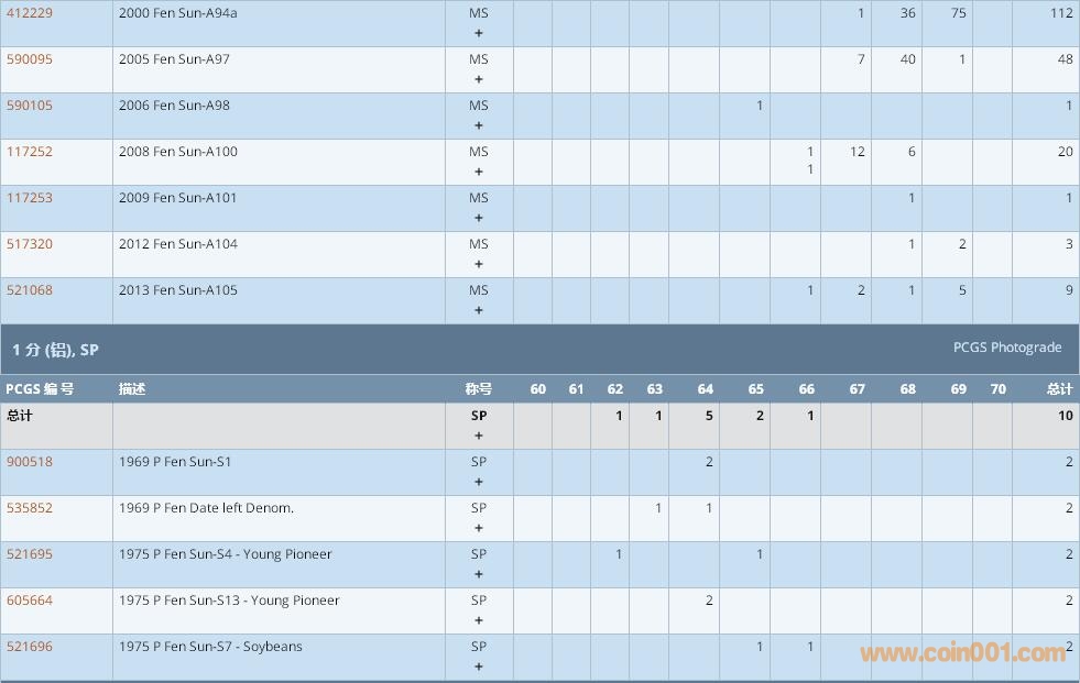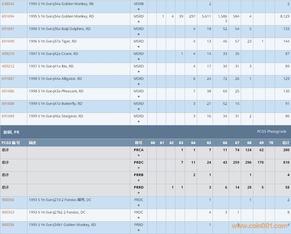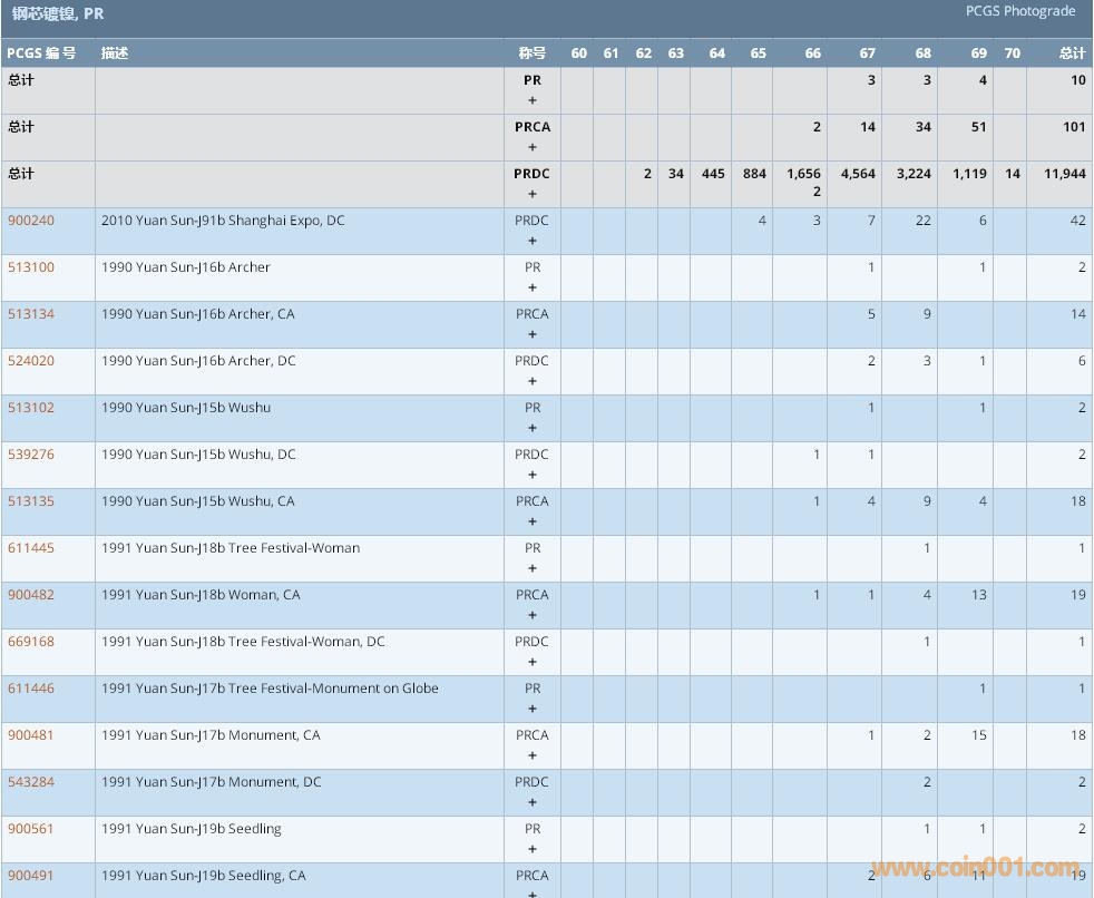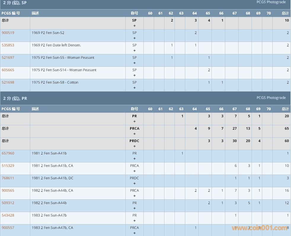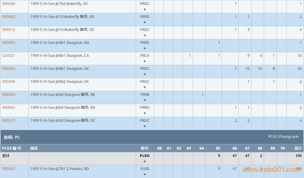 PCGS硬幣評級數(shù)量報告 ..