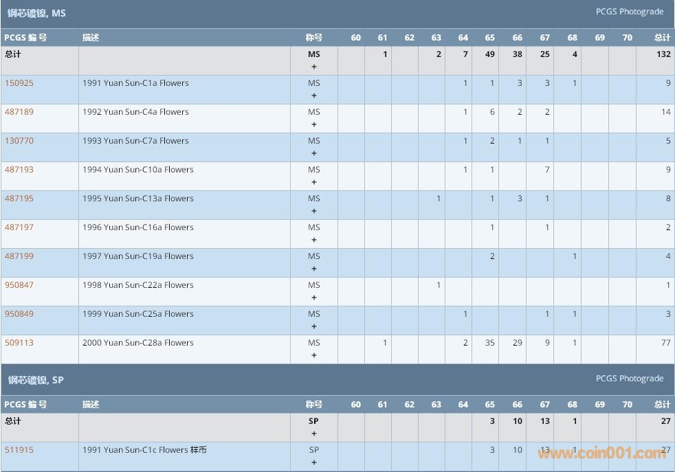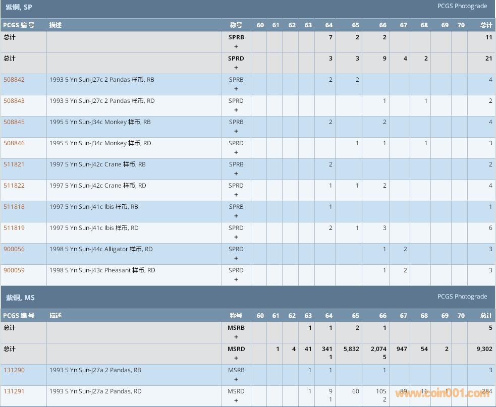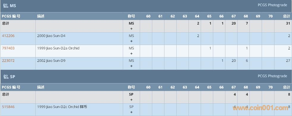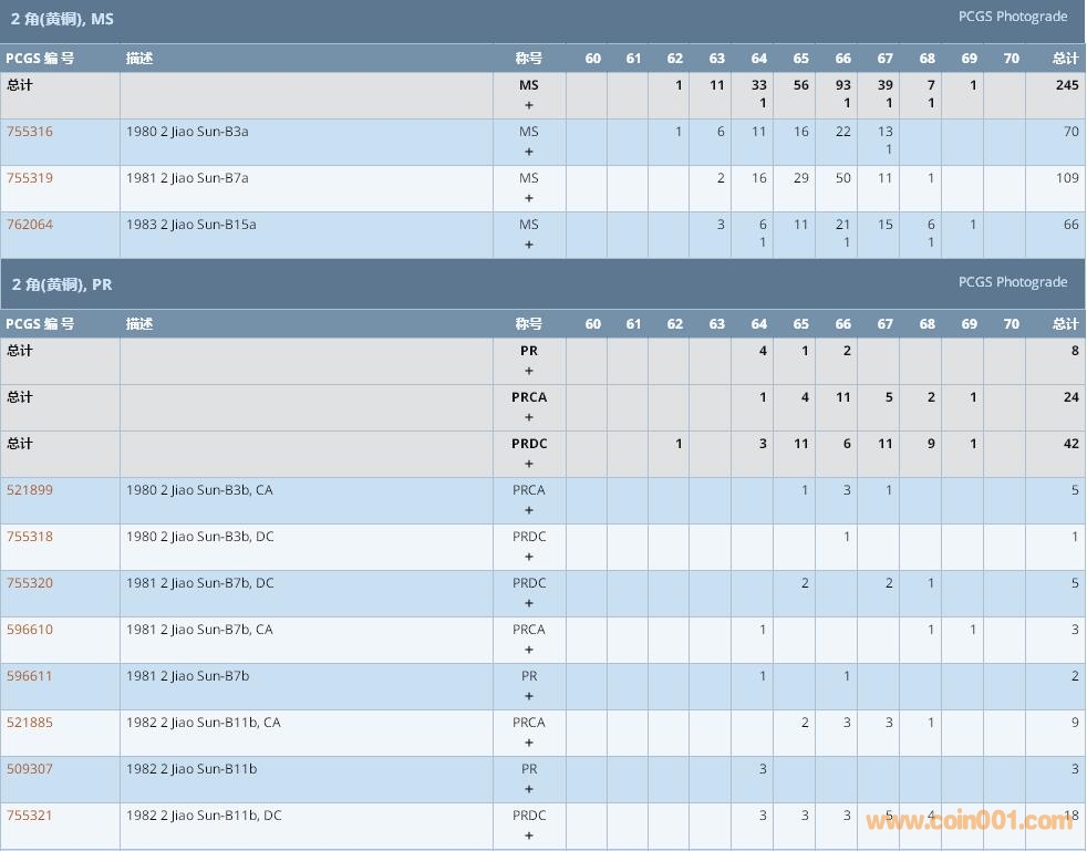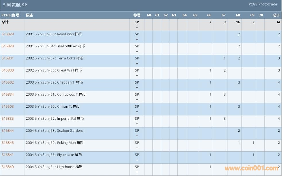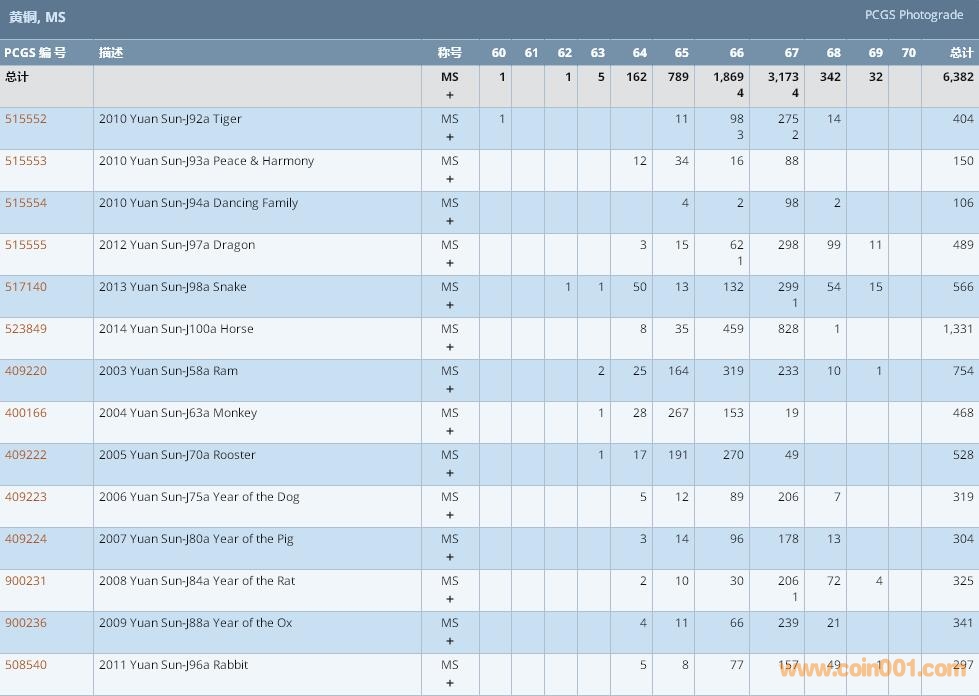 PCGS硬幣評級數(shù)量報告 ..