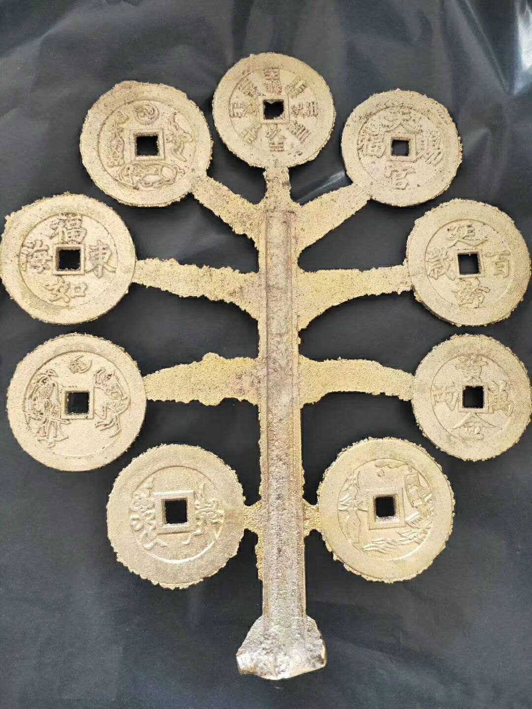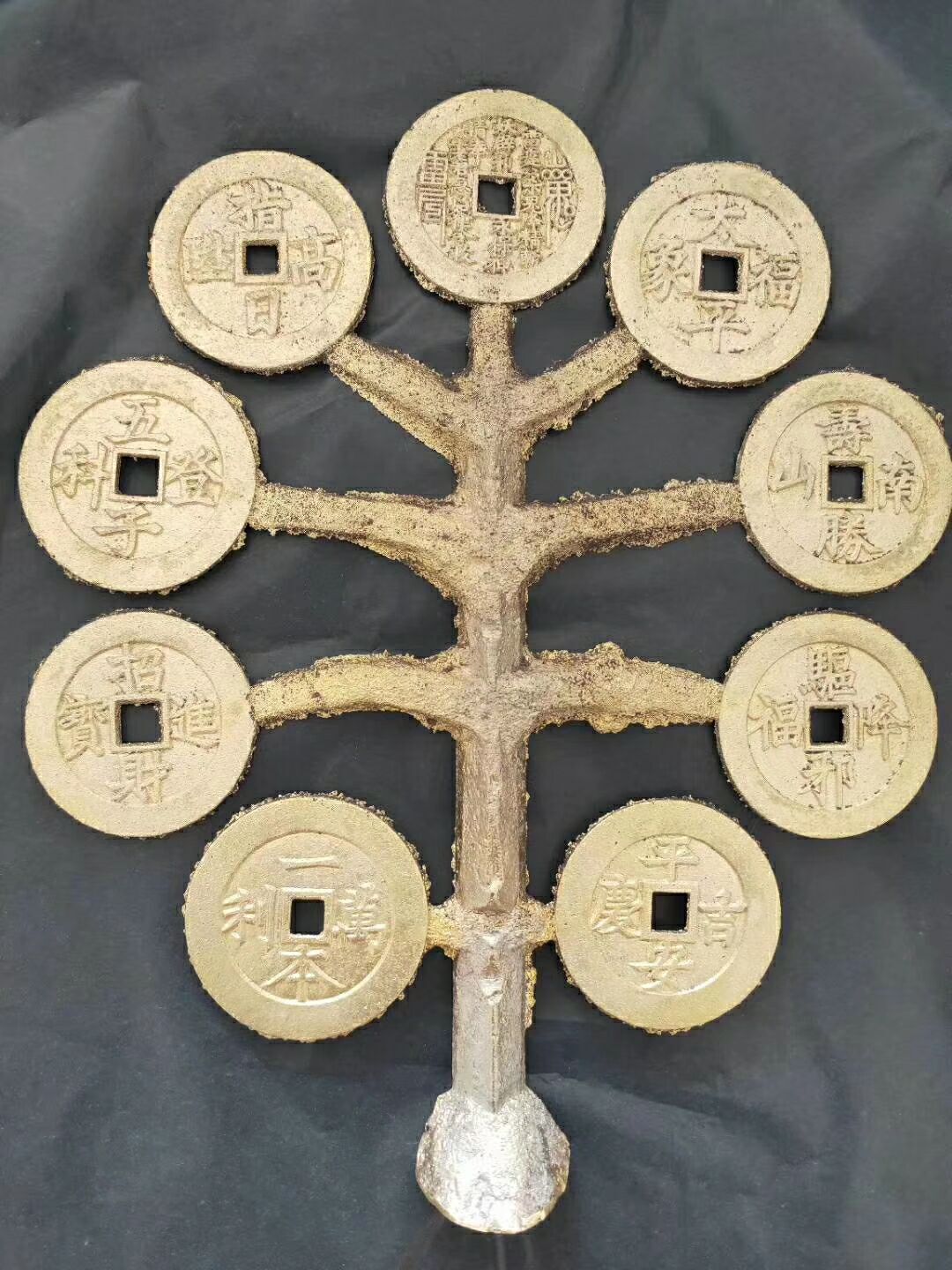 現(xiàn)代古法翻砂工藝品金錢樹,工藝到位制作考究,鑄造這批藝術(shù)品的老藝人祖輩七代為鑄造古幣工匠藝人,第五代曾被調(diào)入宮中做帶班頭領(lǐng)官位緊次于小德張,此次老藝人重出江湖按失傳多年的古法加配老銅鑄造一批金錢樹供大家藏玩,因古法難度較大所以出成率極低,現(xiàn)特供朋友圈十束!每樹僅需288元!低仿花錢30一個也買不到,原生態(tài)未打磨,即可以回去打磨按個把玩又可以整體藏玩是不可多得又價格低廉名家鑄造的不二藝術(shù)珍品?。ㄒ蛉肥止ご蛟旃艓盼恢貌豢赡苈杂胁煌?