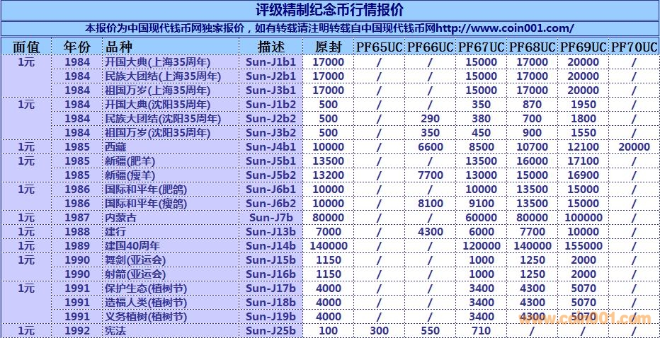 評級普通(精制)紀念幣交易