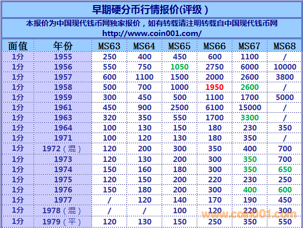 2016,4,1早期硬分幣報(bào)價(jià) ..