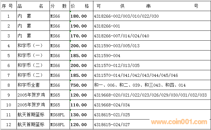 評級普通(精制)紀念幣交易