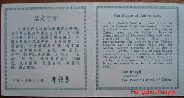 1995年5盎司麒麟銀幣17000元