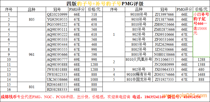 評級普通(精制)紀念幣交易