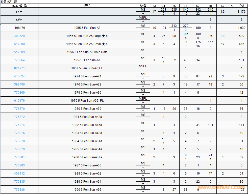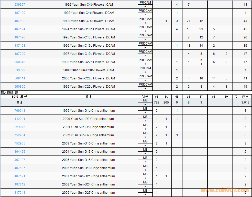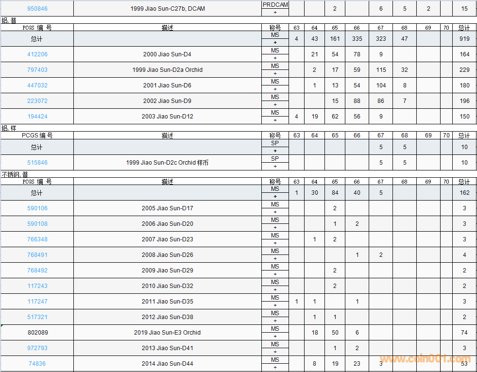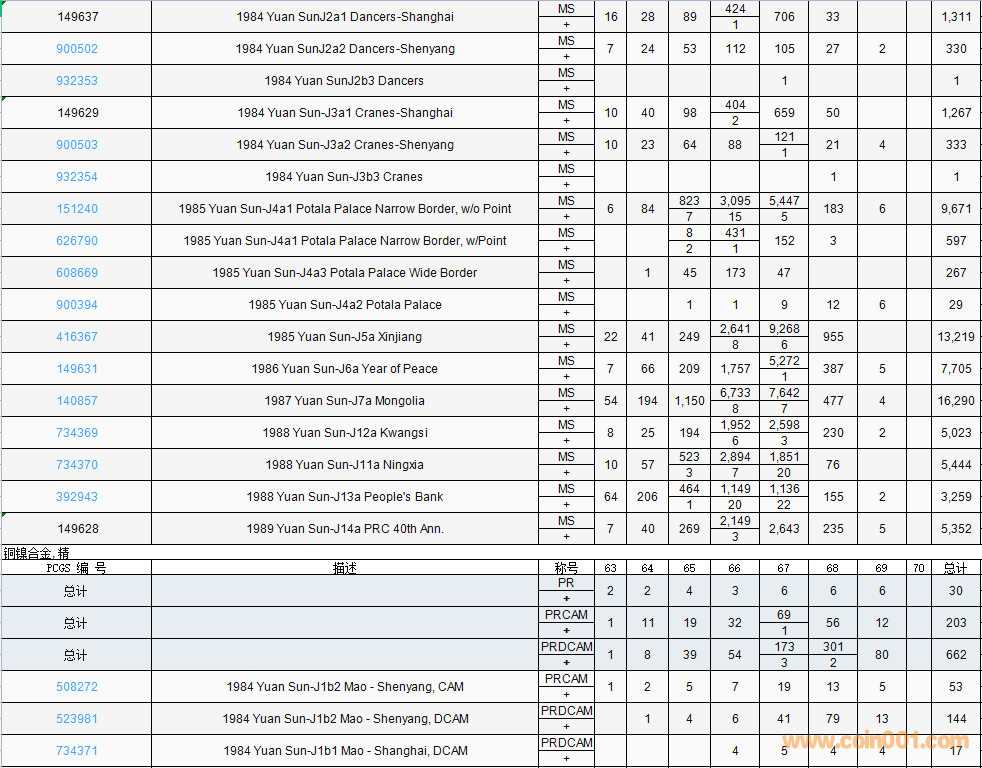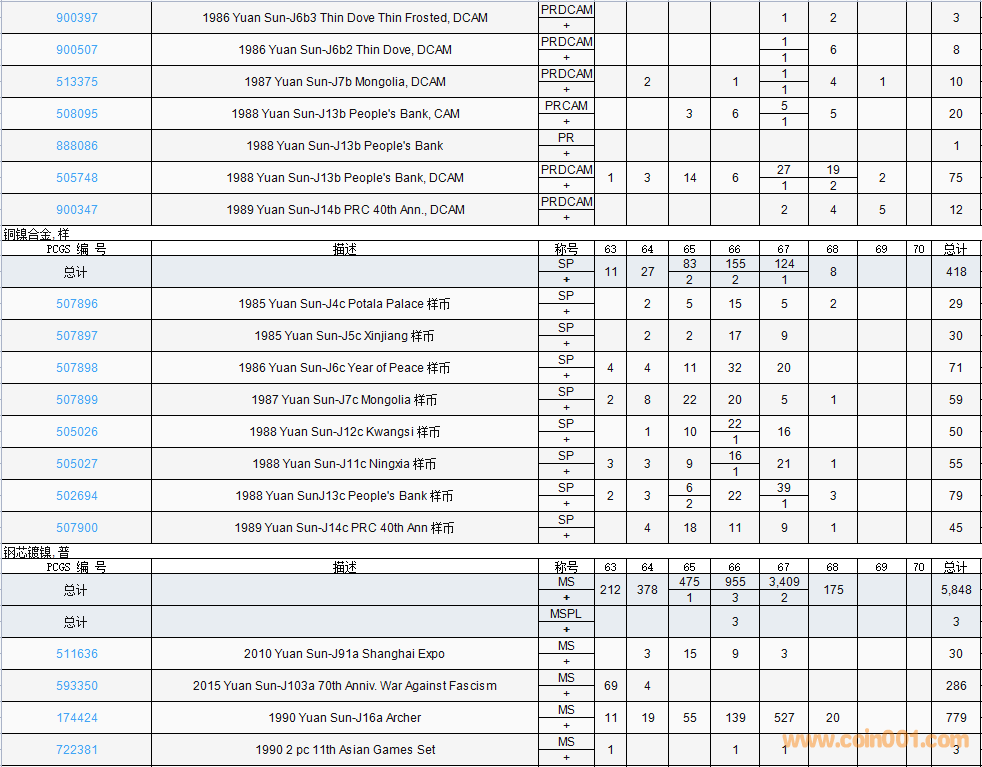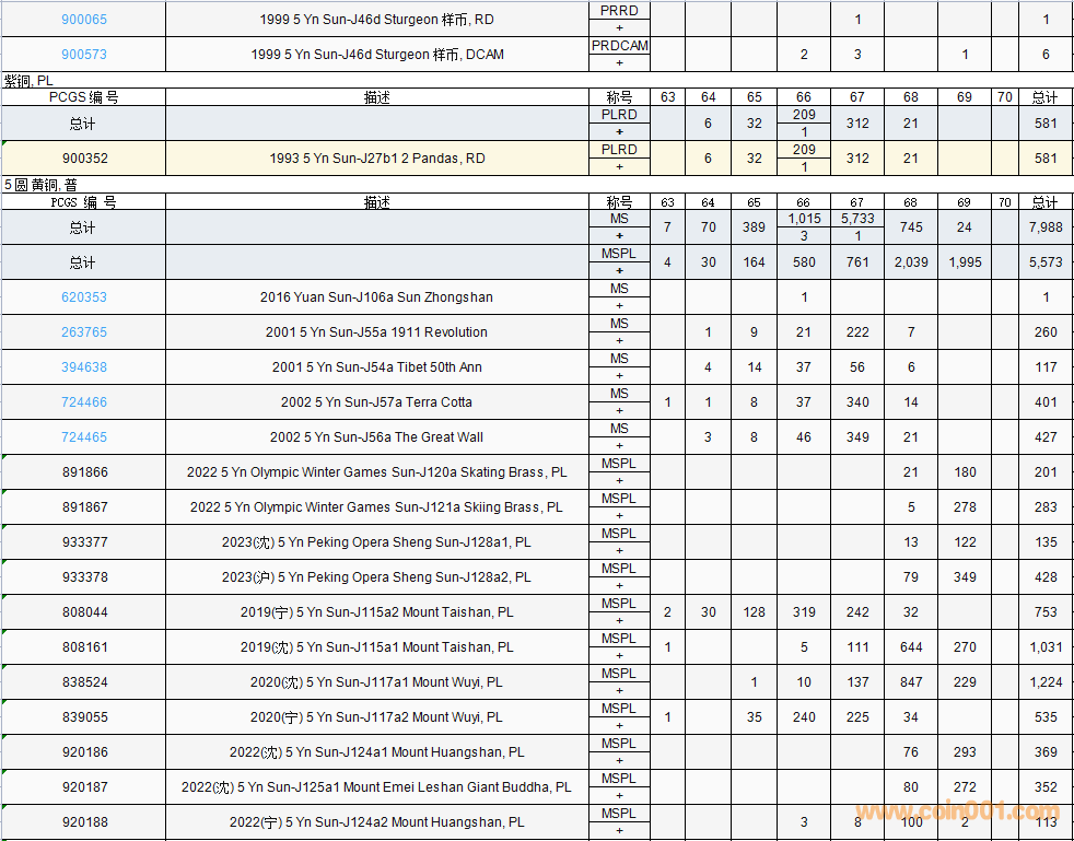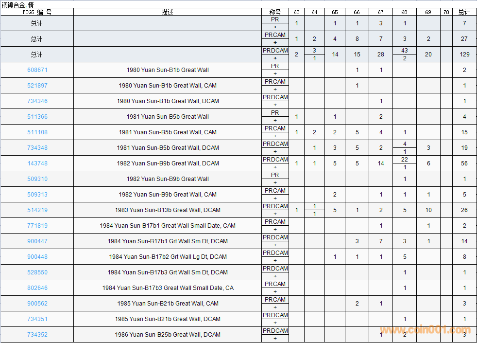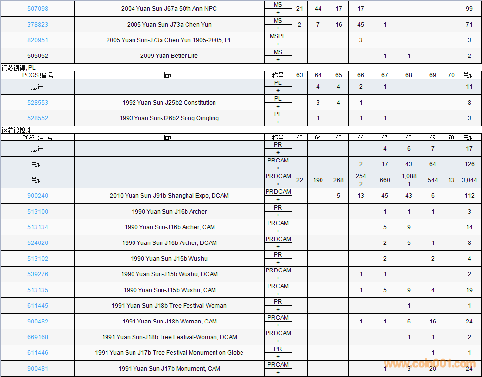 PCGS硬幣評(píng)級(jí)數(shù)量報(bào)告( ..