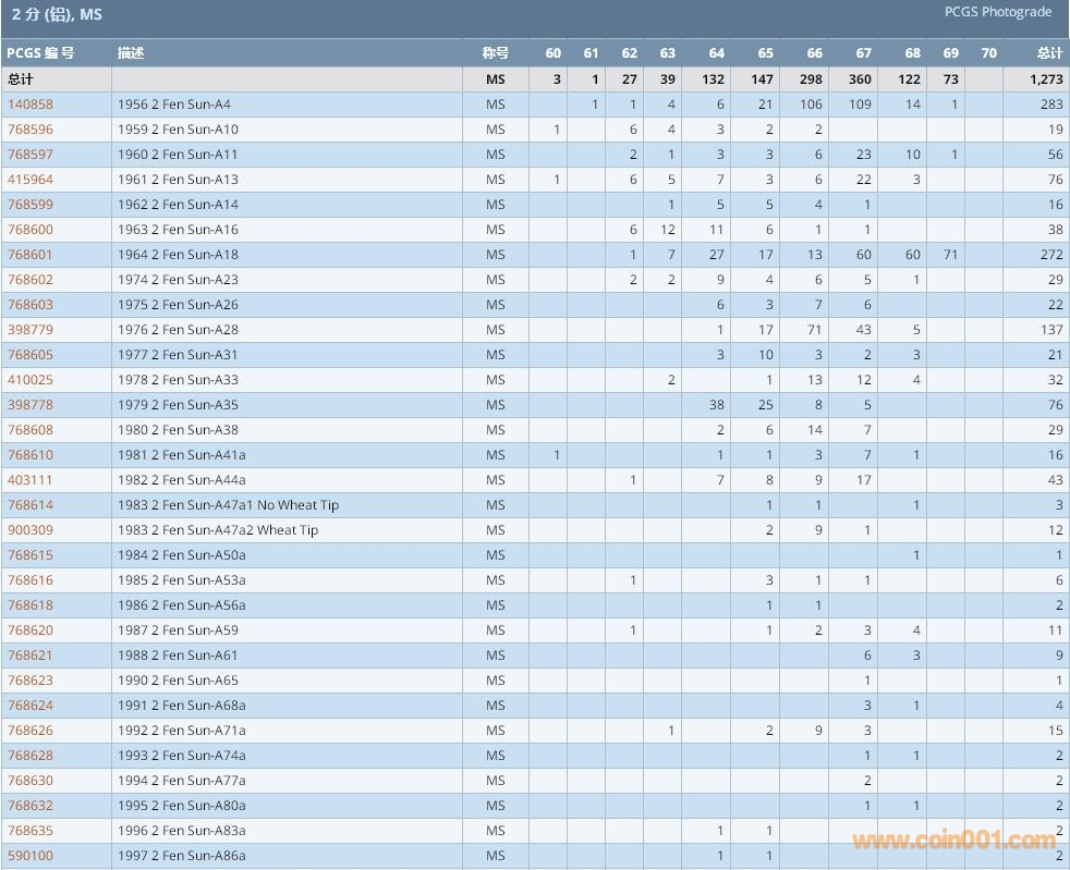 PCGS硬幣評級數(shù)量報告 ..