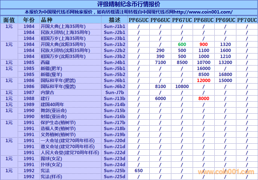評級普通(精制)紀念幣交易