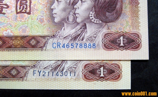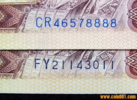 我是2010年3月份才知道有這個(gè)品種,當(dāng)時(shí)有一位泉友拿了一刀80版壹元天藍(lán)整刀給我看,我看了一下,眼睛一亮,和其他普通80版壹元不一樣,801天藍(lán)冠號(hào)和數(shù)字顏色完全不一樣,猶如雨后的藍(lán)天,又像湛藍(lán)的大海,看上去非常舒服,非常漂亮。
