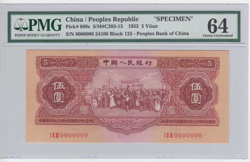 紅五元票樣一張 &n ..