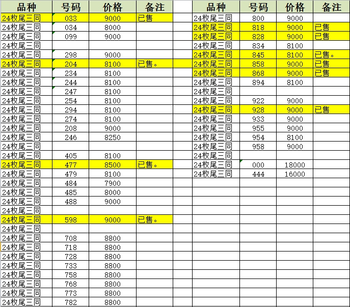 出售第三套24枚尾三同 ..