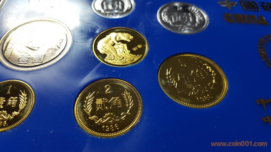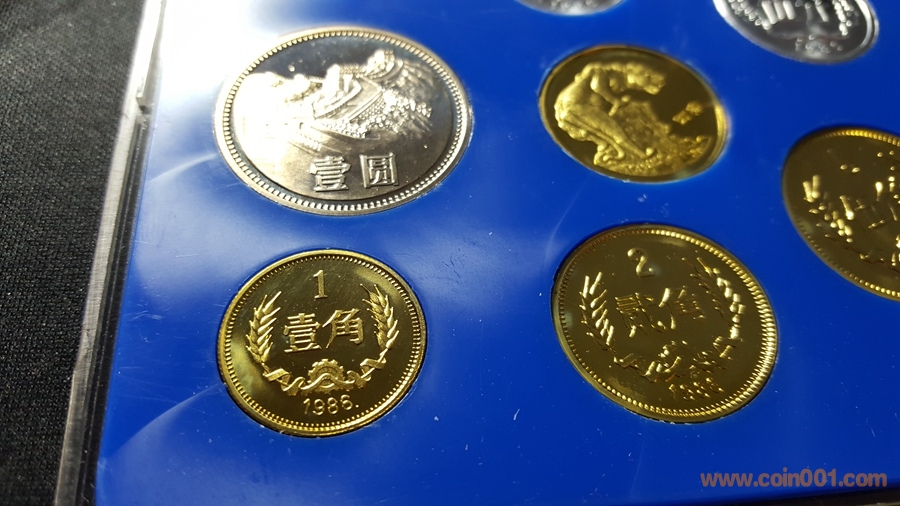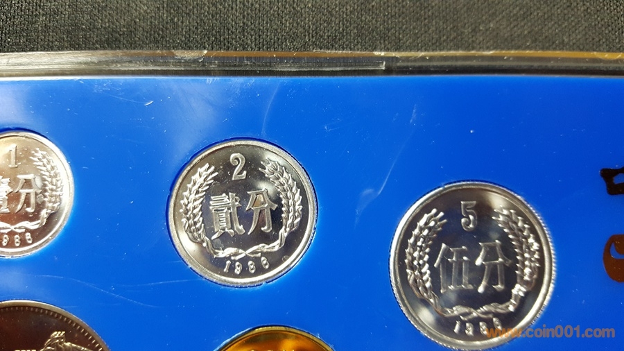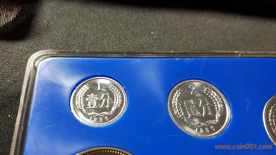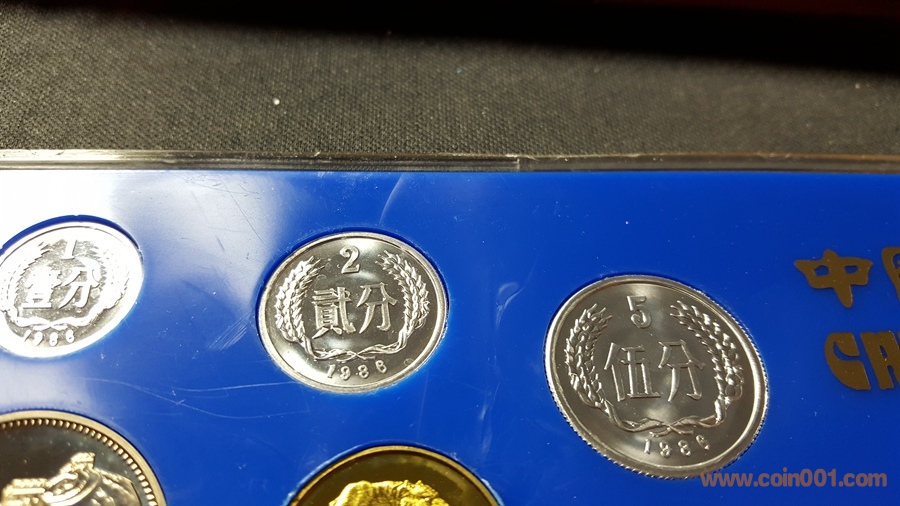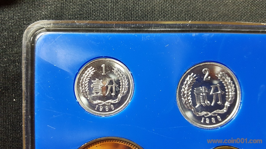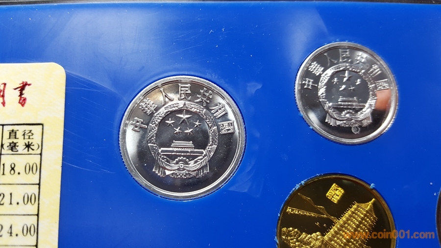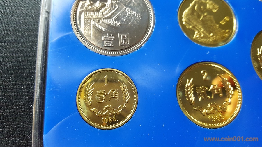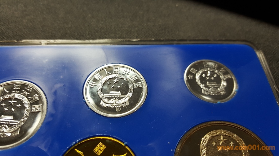 86精制長(zhǎng)城套幣,1元國(guó)徽重噴砂,極美;角幣分幣鏡面感一流,角幣無(wú)明顯黑點(diǎn),有輕微霧化;虎章有兩個(gè)小黑點(diǎn)。幣章底板都很好,無(wú)明顯劃痕硬傷,86原冊(cè)里面這本算得上是頂級(jí)品相了。